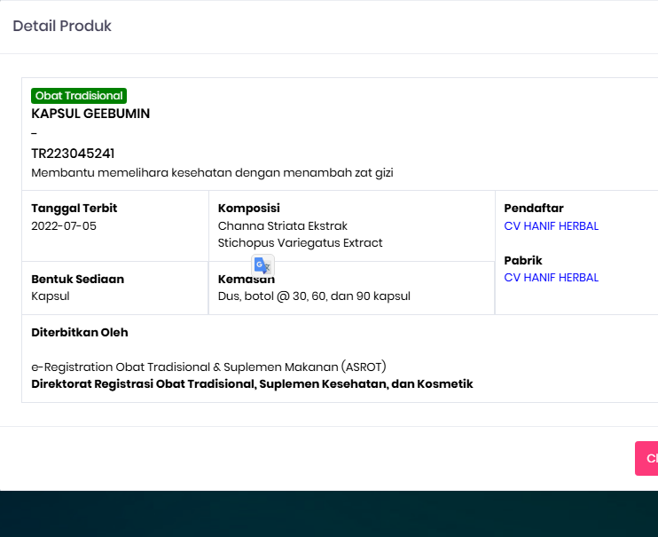 Diproduksi oleh: PT Herbaluna Alami Indonesia – Ngawi, Jawa Timur